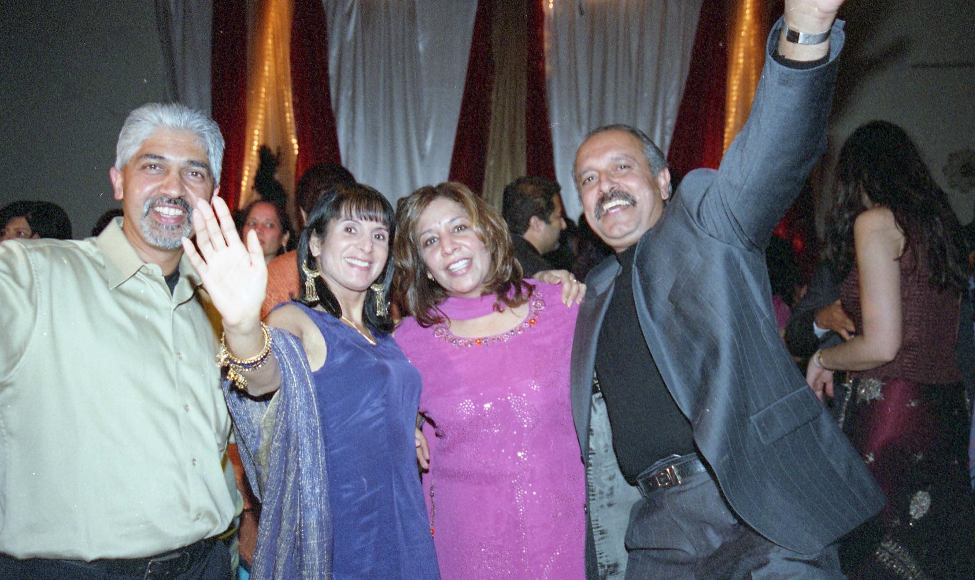 [Group photograph of attendees celebrating at a South Asian Family Association fundraising event, 2004]