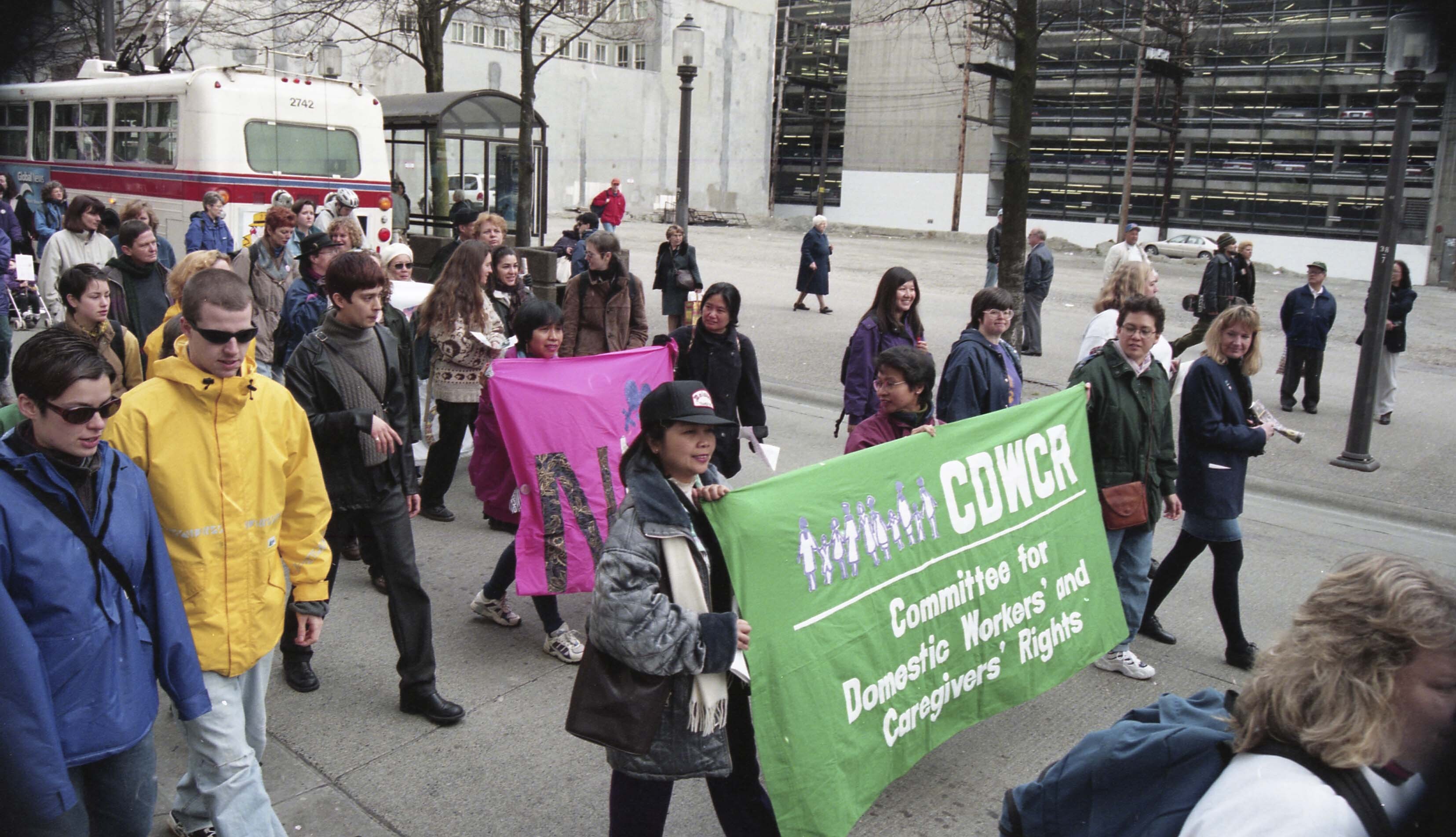 Photograph of the Committee for Domestic Workers' and Caregivers' Rights participating in the International Women's Day parade which took place in Vancouver, British Columbia (B.C.).