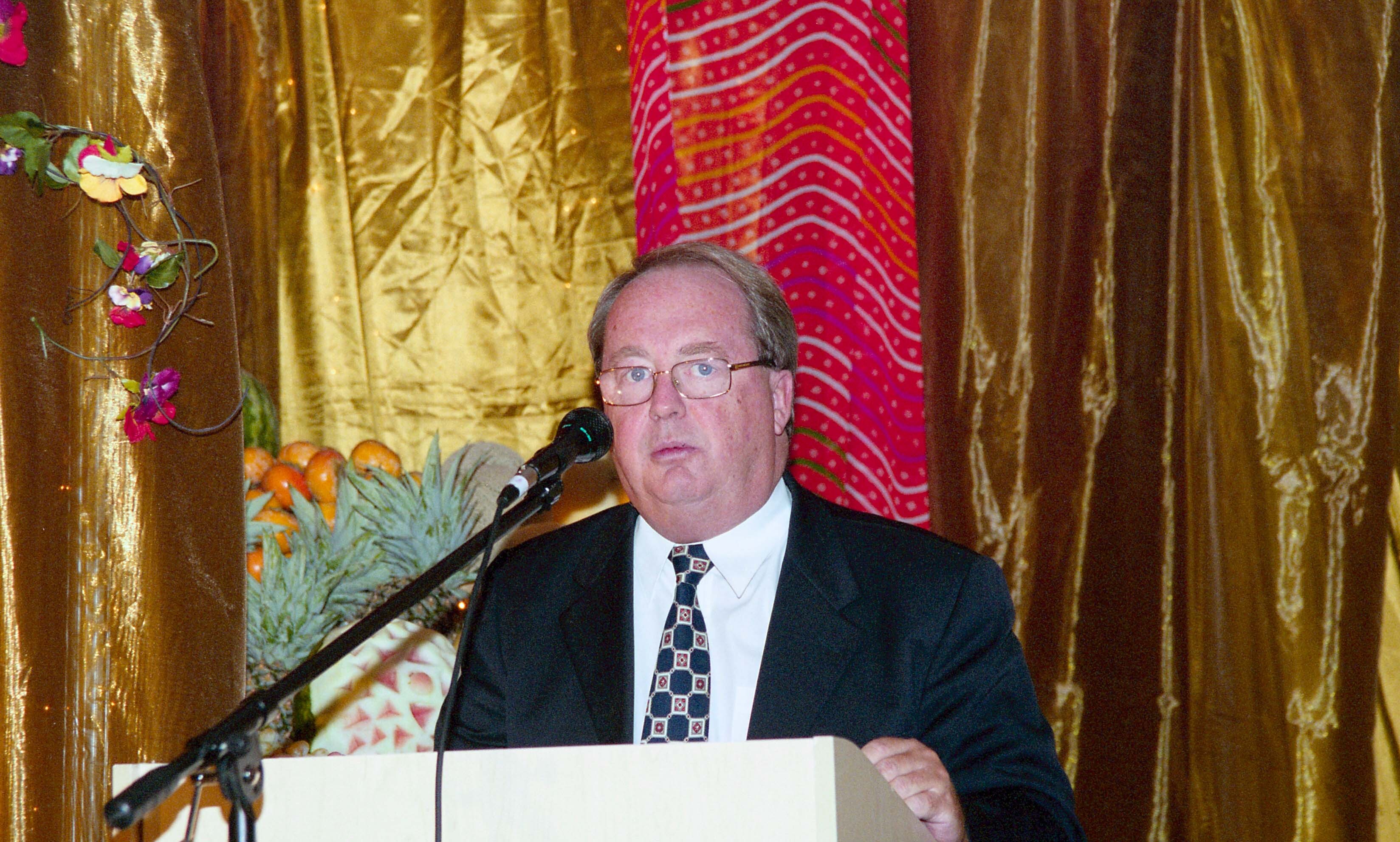 [Photograph of Doug McCallum delivering a speech at Fruiticana's 10th anniversary celebration event in Surrey]