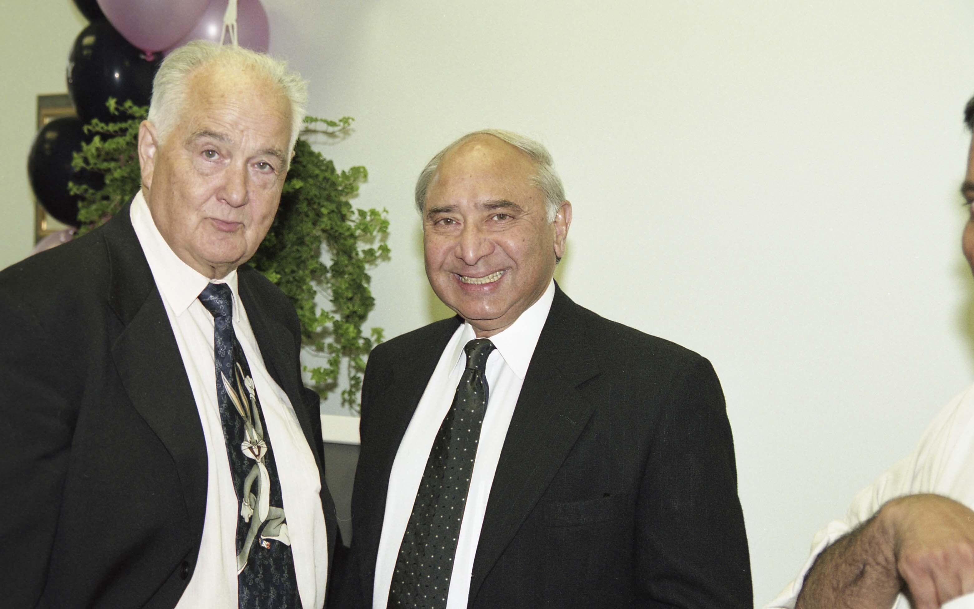 Photograph of unidentified individuals posing together at an open house event[?] hosted by Patty Sahota on July 27, 2001.