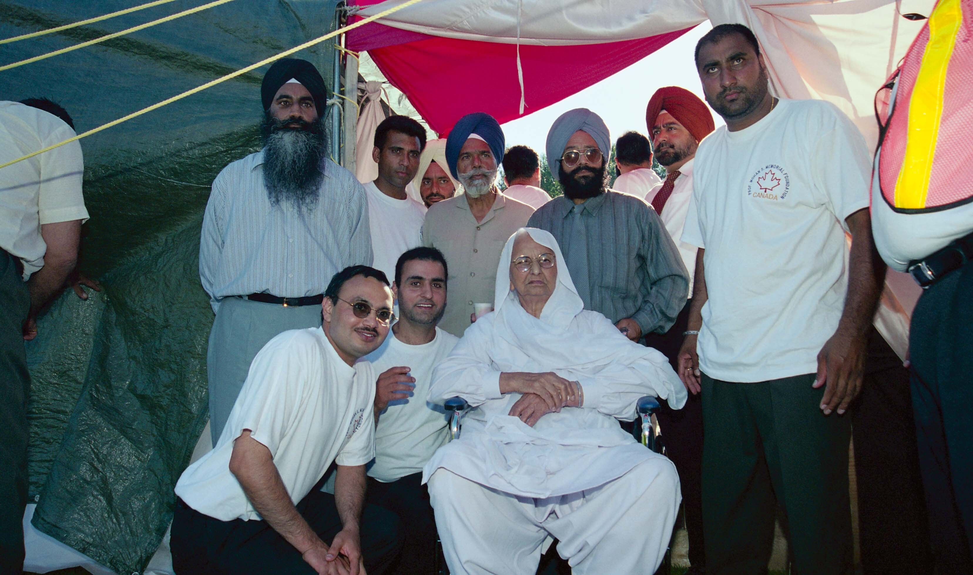 Photograph of a group of unidentified individuals at the Ghadri Babe Mela organised by Professor Mohan Singh Memorial Foundation (Canada) in Bear Creek, Surrey, British Columbia (B.C.).
