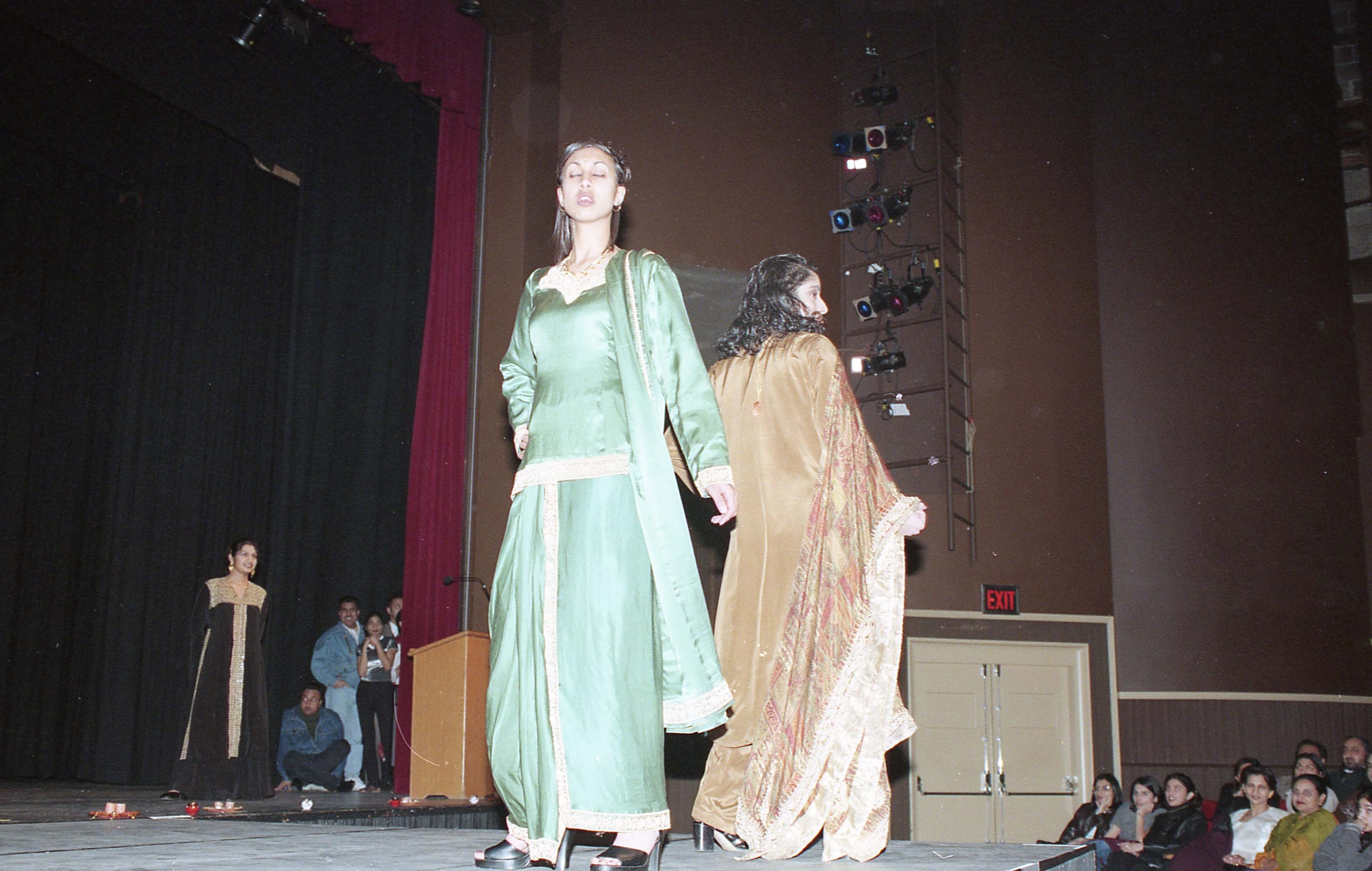 Photograph of unidentified individuals partaking in a South Asian fashion show, part of a cultural show at Massey Theatre in New Westminster, British Columbia.