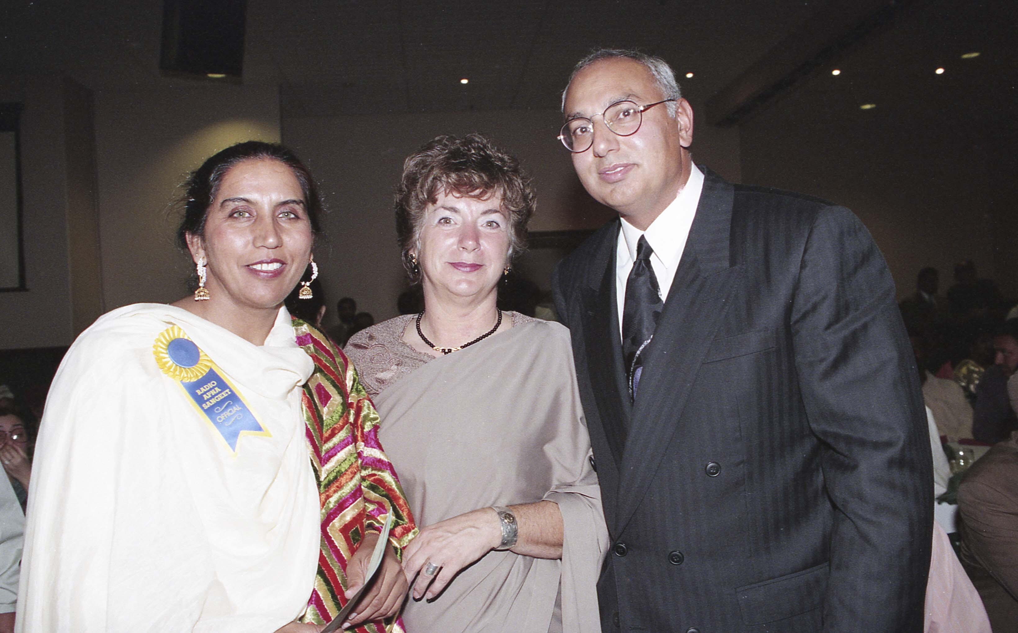 Photograph of Sue Hammell, former Surrey MLA (member of legislative assembly), and Herb Dhaliwal, former cabinet minister, with another unidentified individual at the second anniversary event for radio apna sangeet, where the Punjab Times newspaper was unveiled.