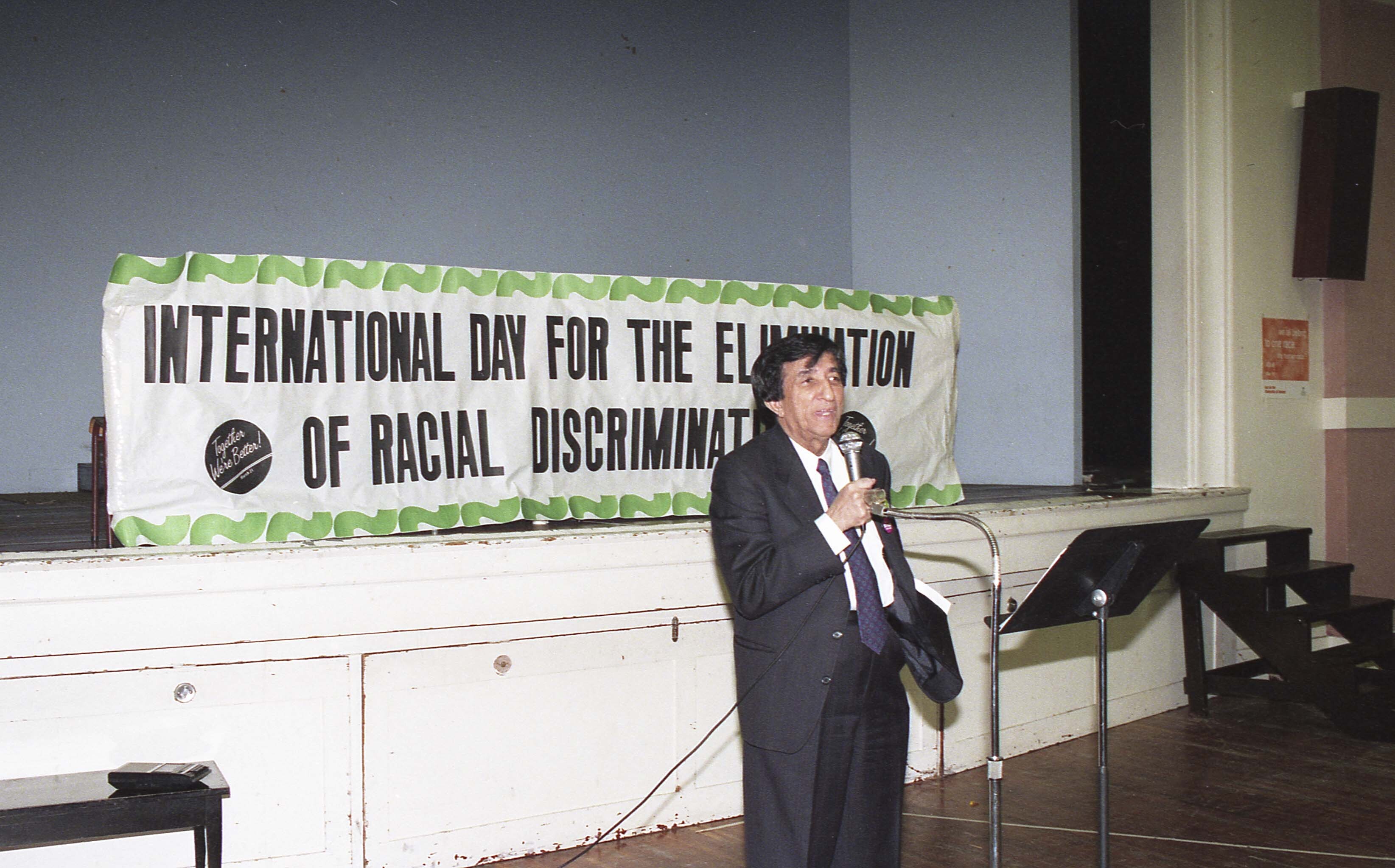 [Photograph of Aziz Khaki at the International Day for the Elimination of Racial Discrimination event in Vancouver]