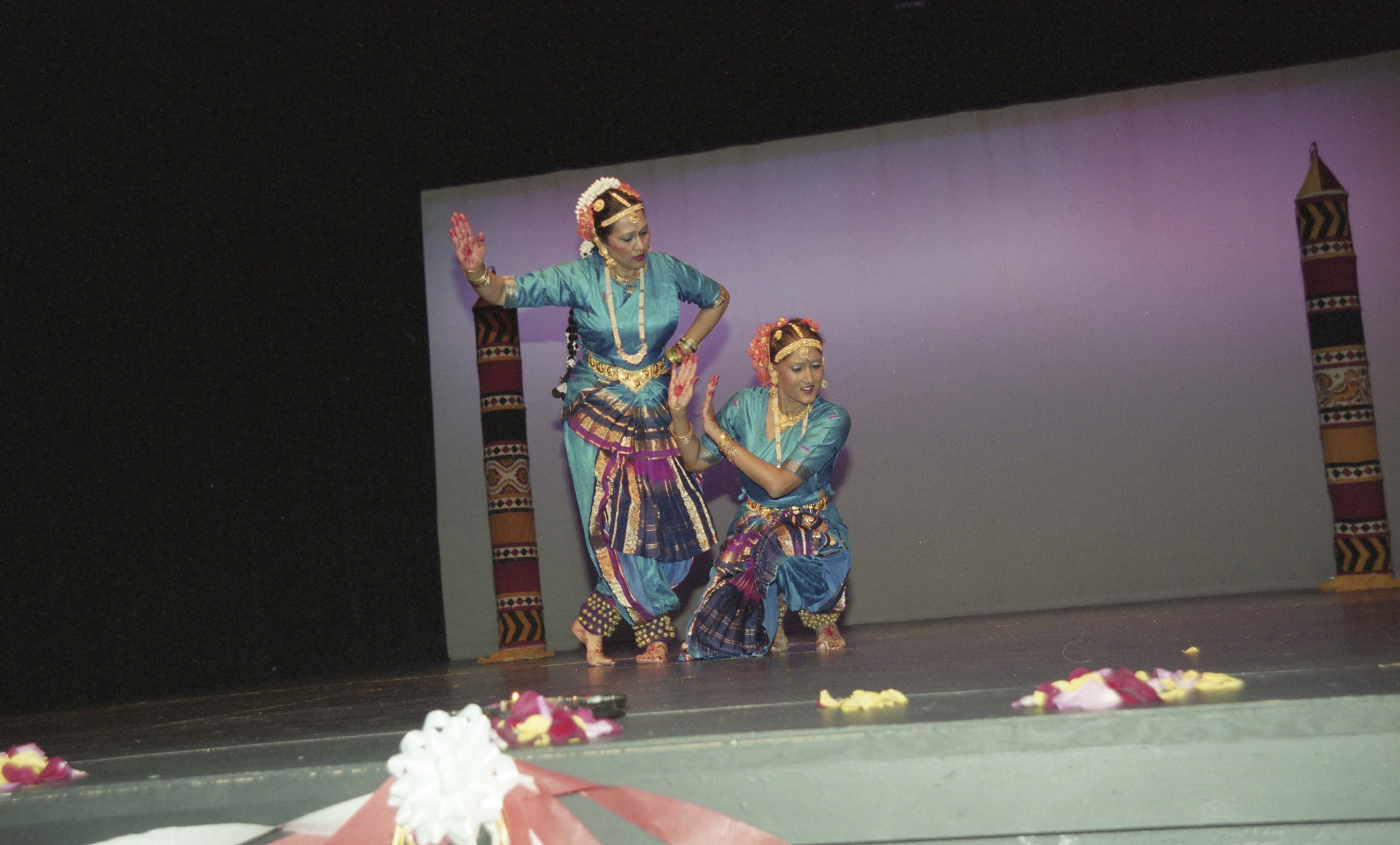 [Photograph of individuals performing bharatanatyam at a dance recital]