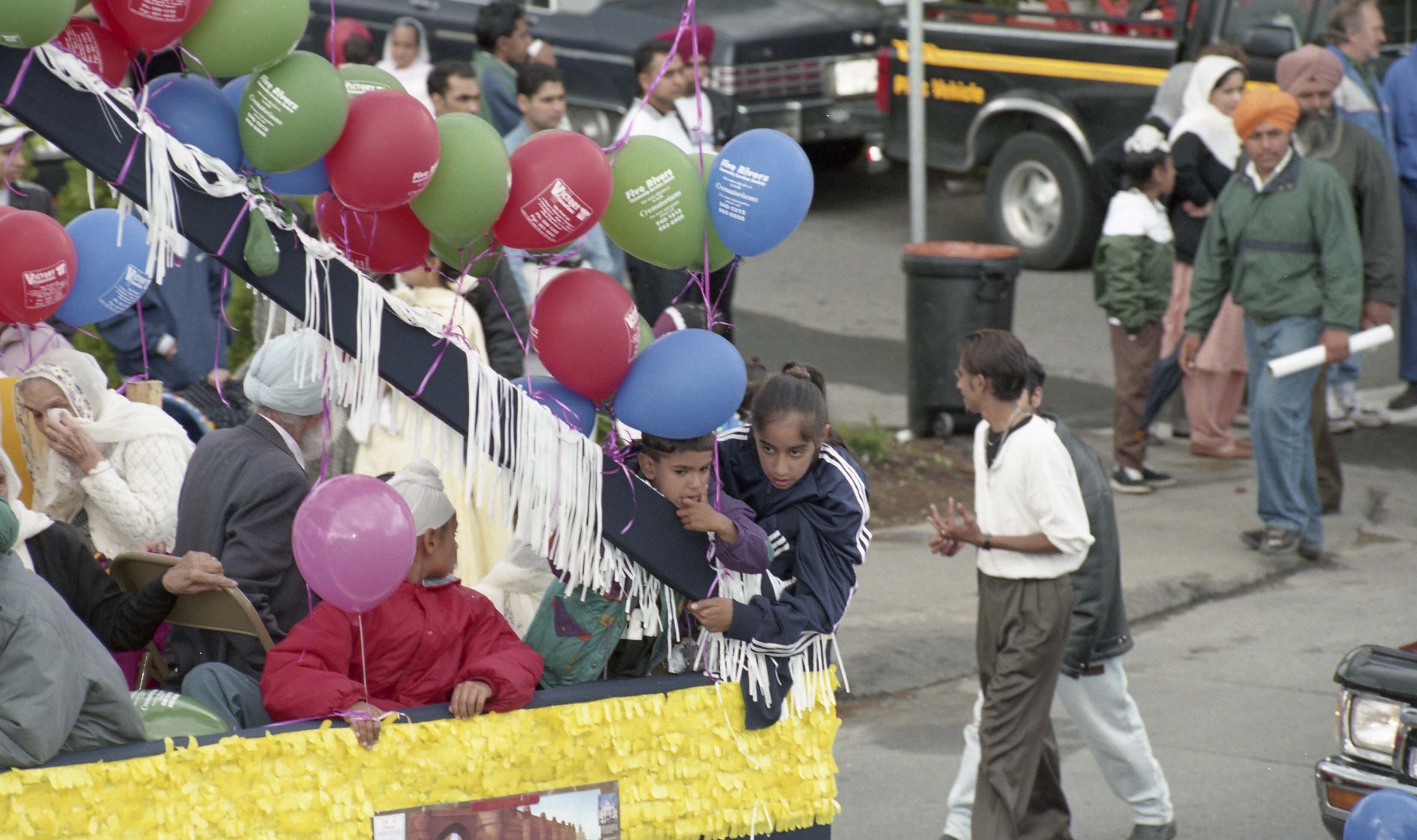 [Photograph of individuals in a float at the Miri Piri Nagar Kirtan in Surrey]