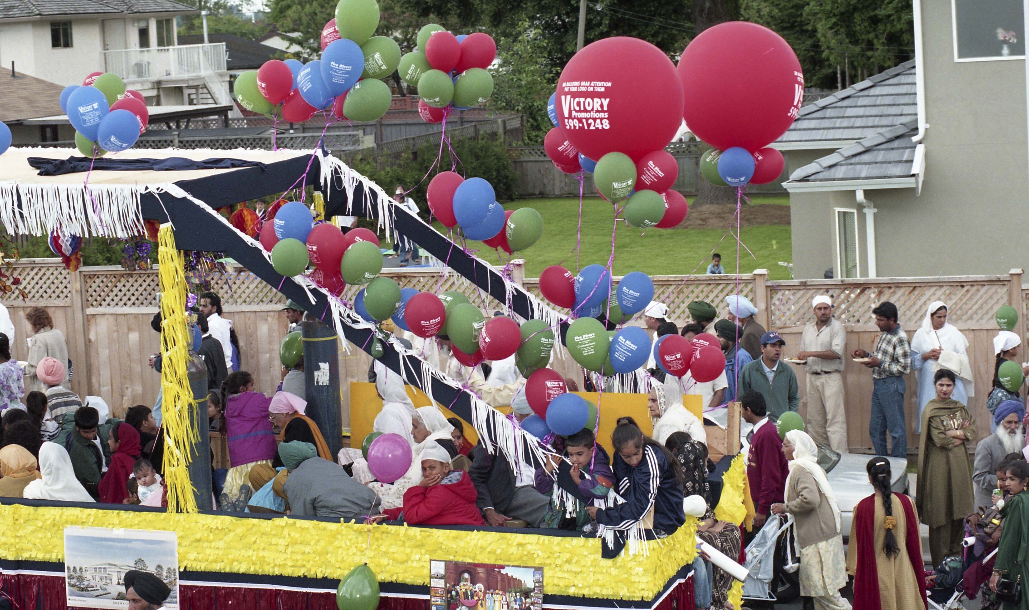 [Photograph of individuals in a float at the Miri Piri Nagar Kirtan in Surrey]