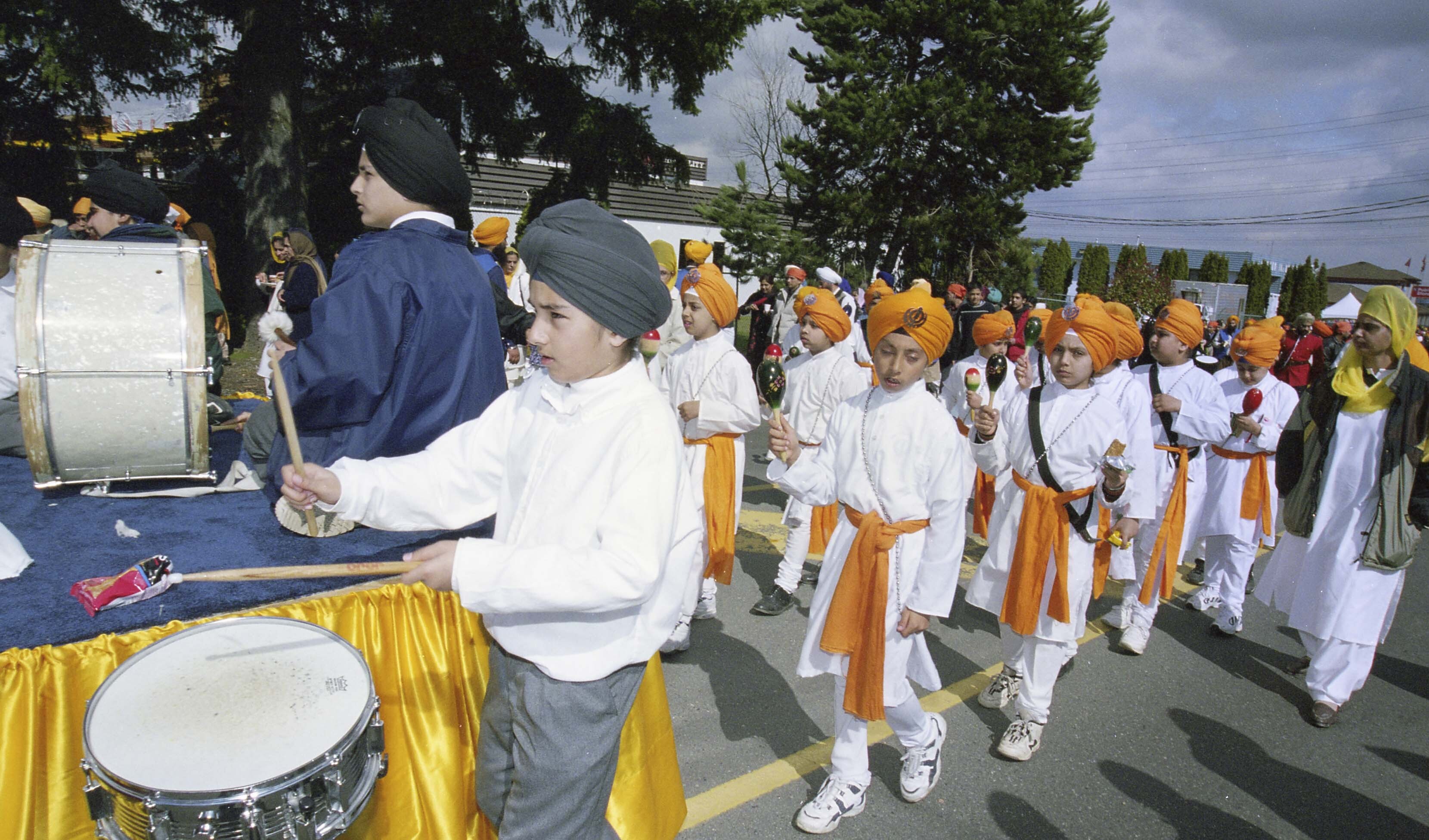 Photograph of a group of unidentified individuals at the Vaisakhi Nagar Kirtan held in Surrey, British Columbia (B.C.).
