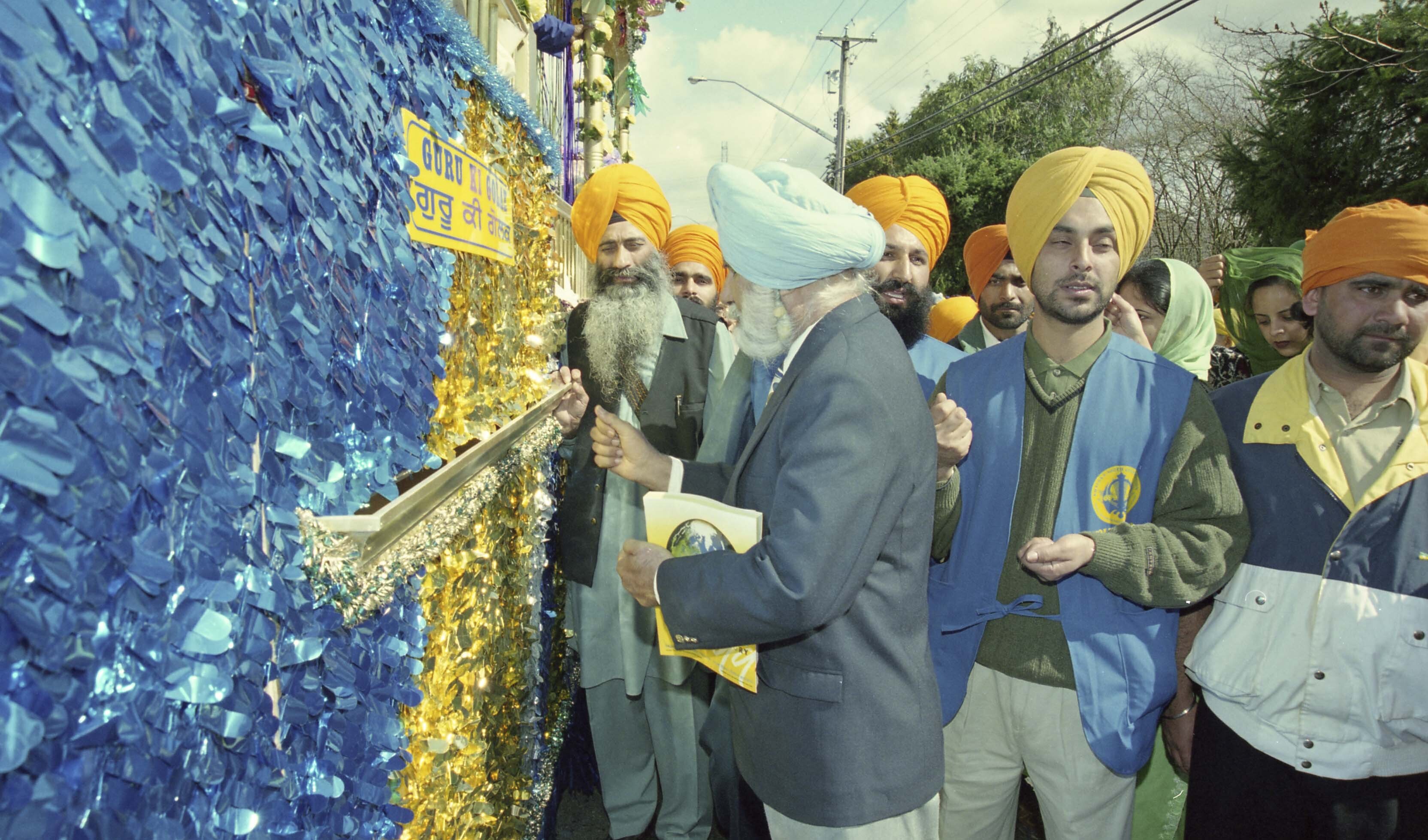 Photograph of a group of unidentified individuals at the Vaisakhi Nagar Kirtan held in Surrey, British Columbia (B.C.).