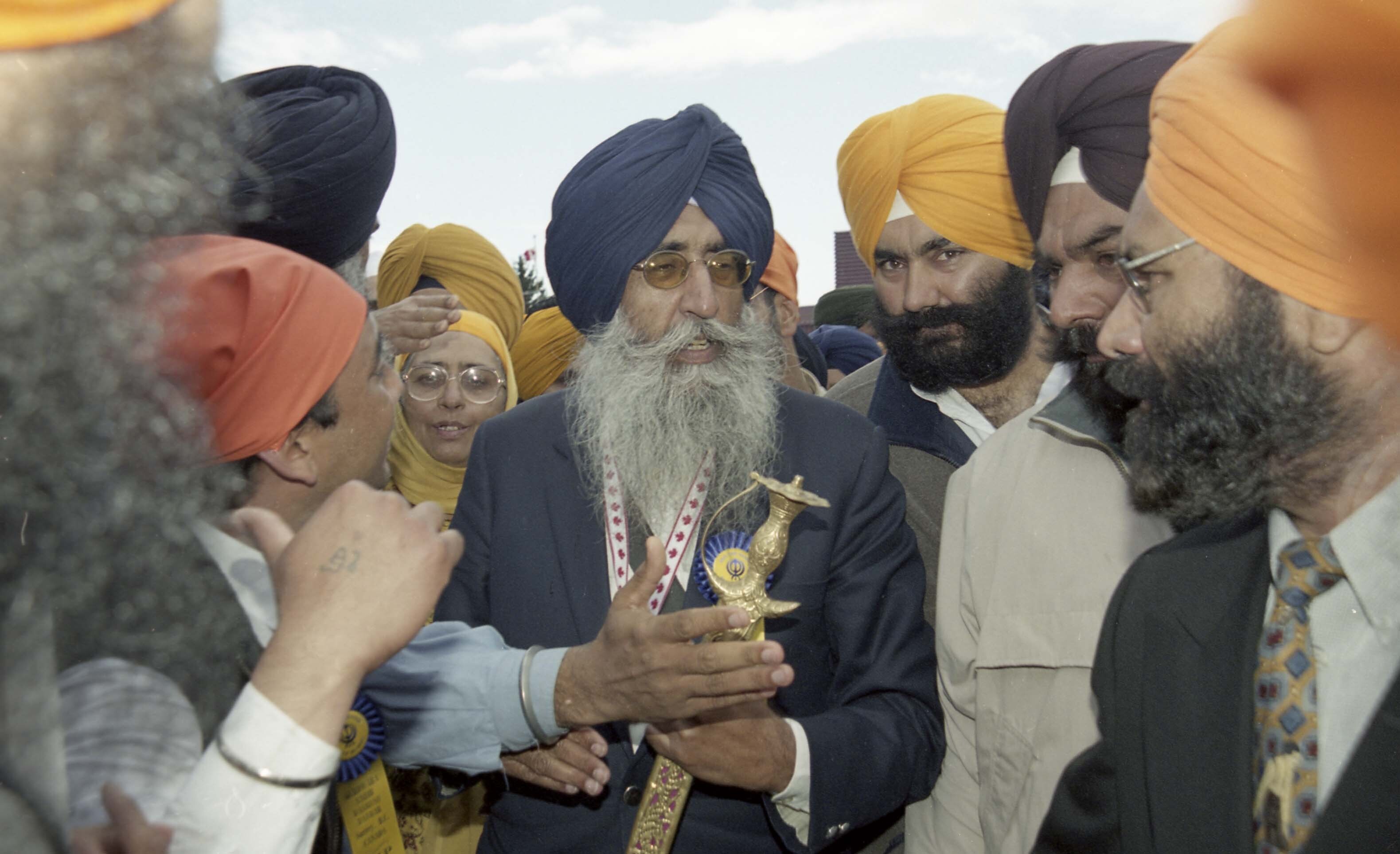 Photograph of a group of unidentified individuals at the Vaisakhi Nagar Kirtan held in Surrey, British Columbia (B.C.).
