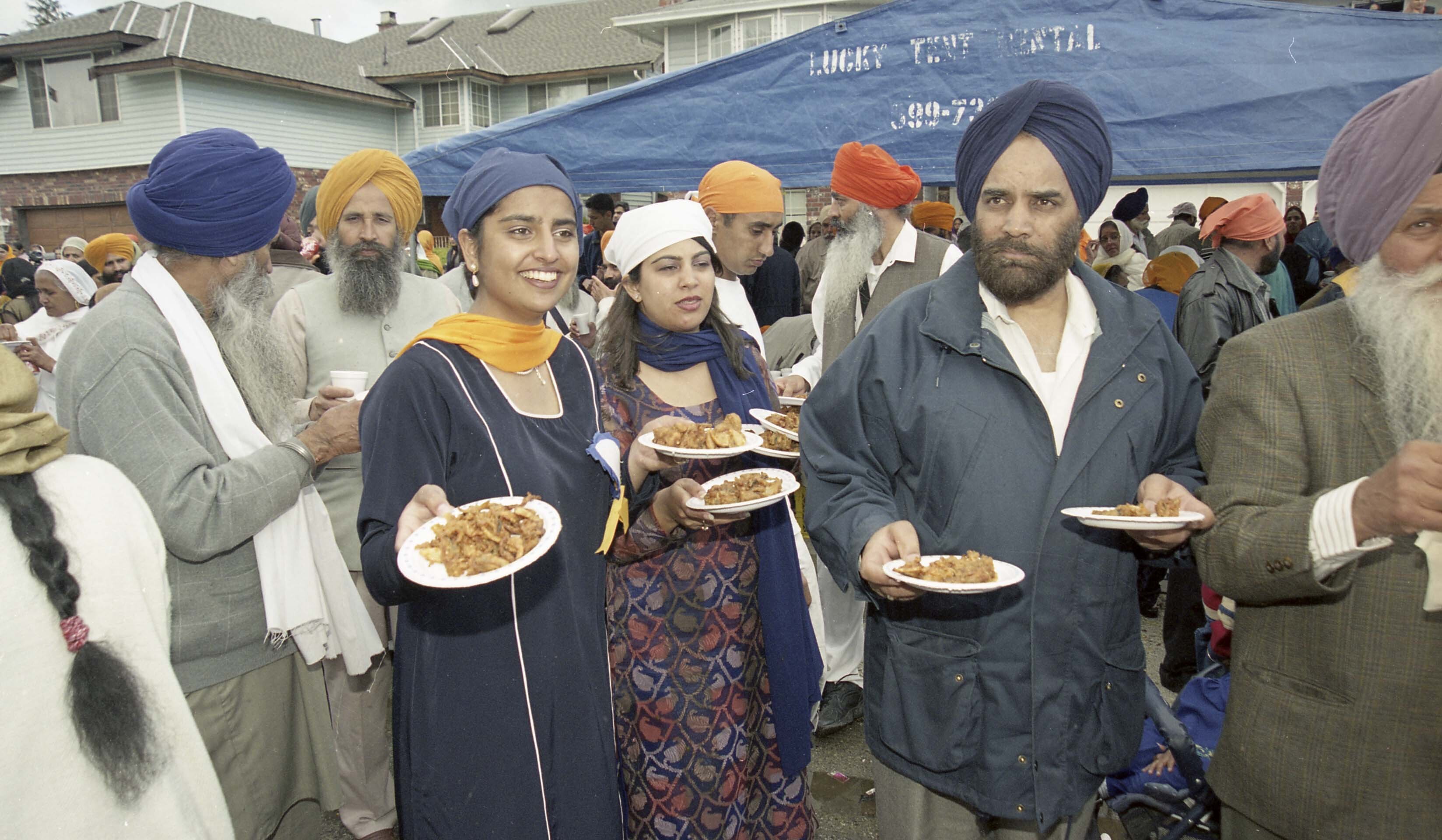 Photograph of a group of unidentified individuals serving food at the Vaisakhi Nagar Kirtan held in Surrey, British Columbia (B.C.).