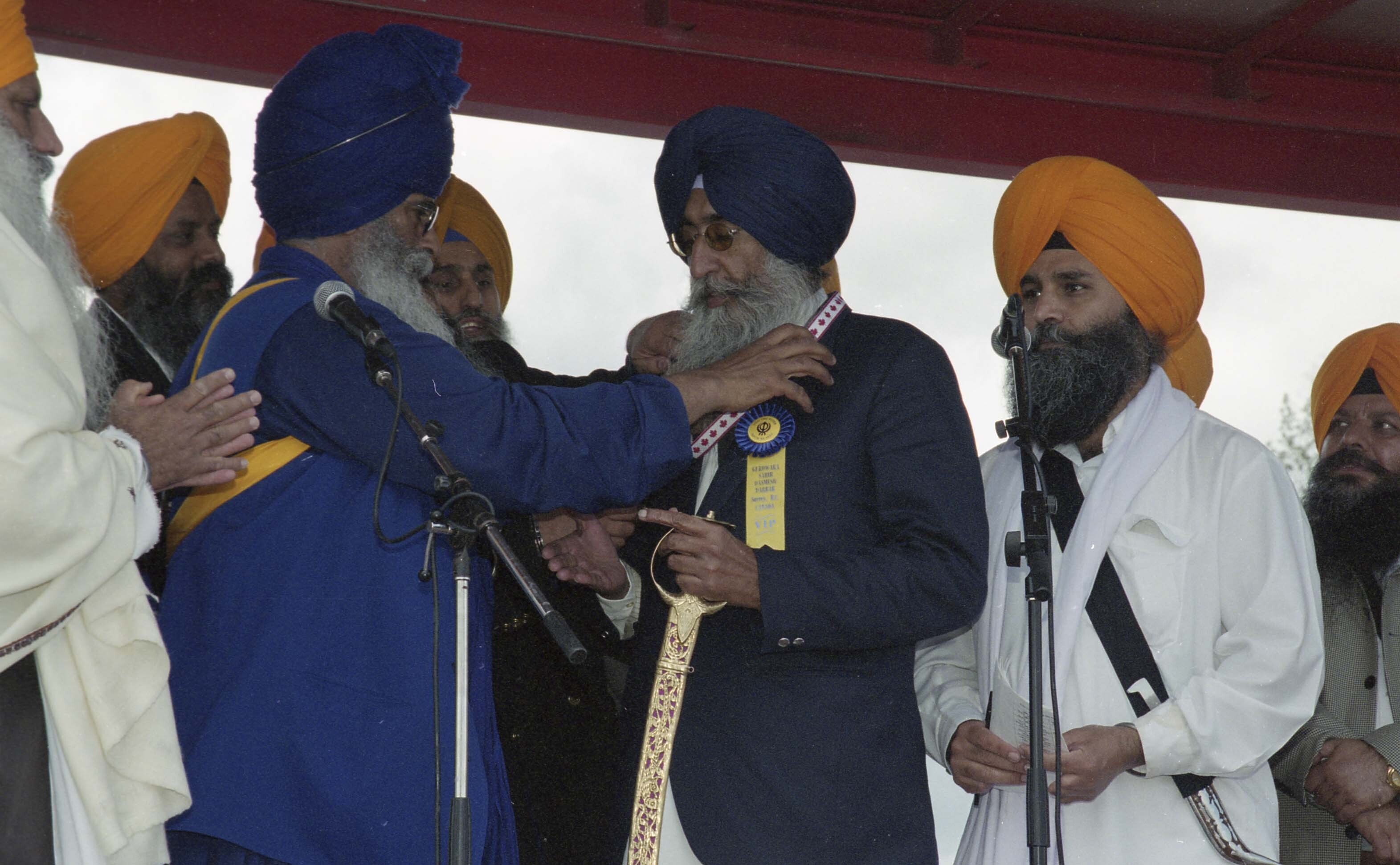 [Photograph of an individual receiving a medal at the Vaisakhi Nagar Kirtan in Surrey]