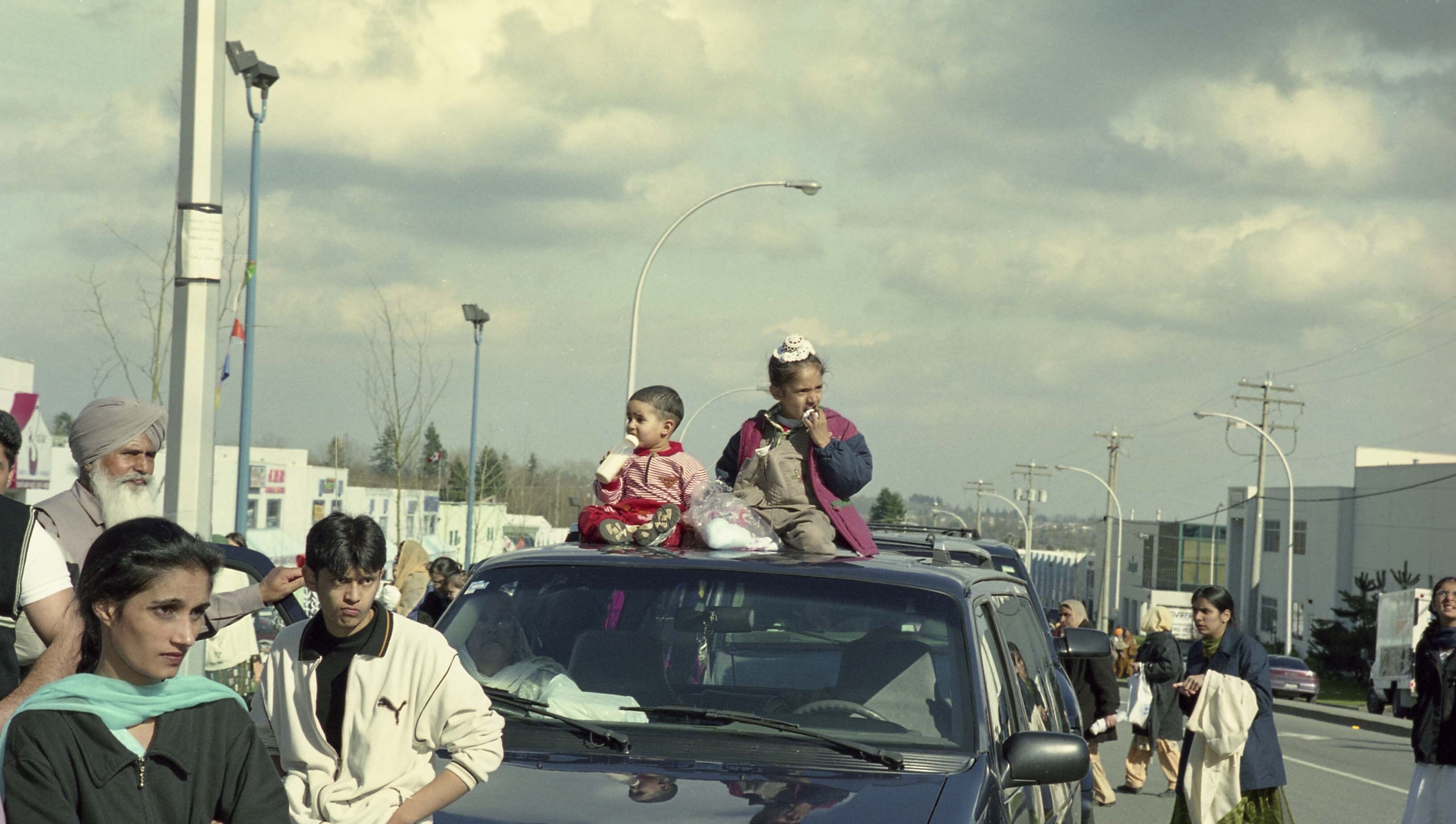 Photograph of a group of unidentified individuals at the Vaisakhi Nagar Kirtan held in Surrey, British Columbia (B.C.).