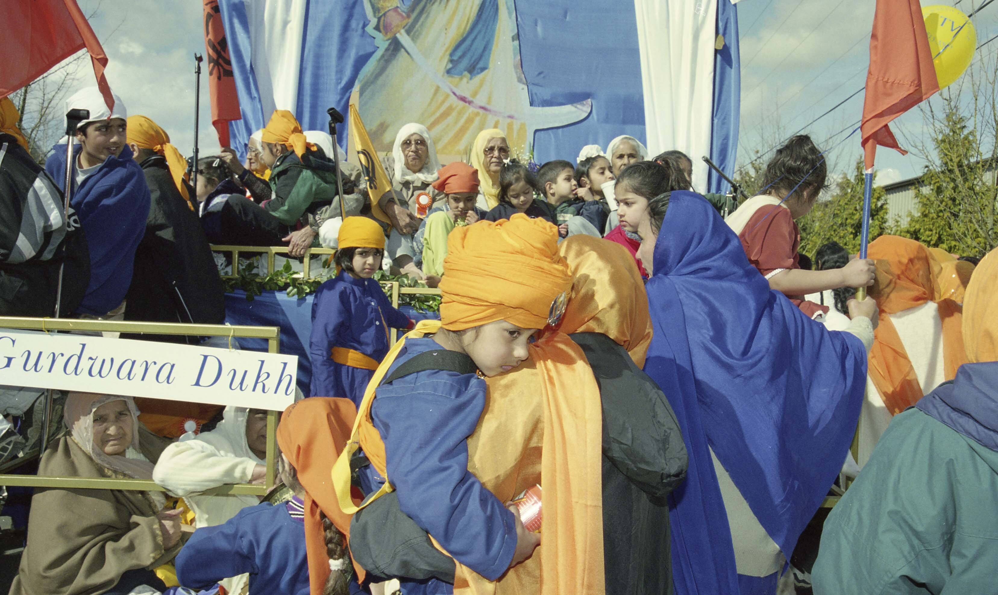 Photograph of a group of unidentified individuals at the Vaisakhi Nagar Kirtan held in Surrey, British Columbia (B.C.).