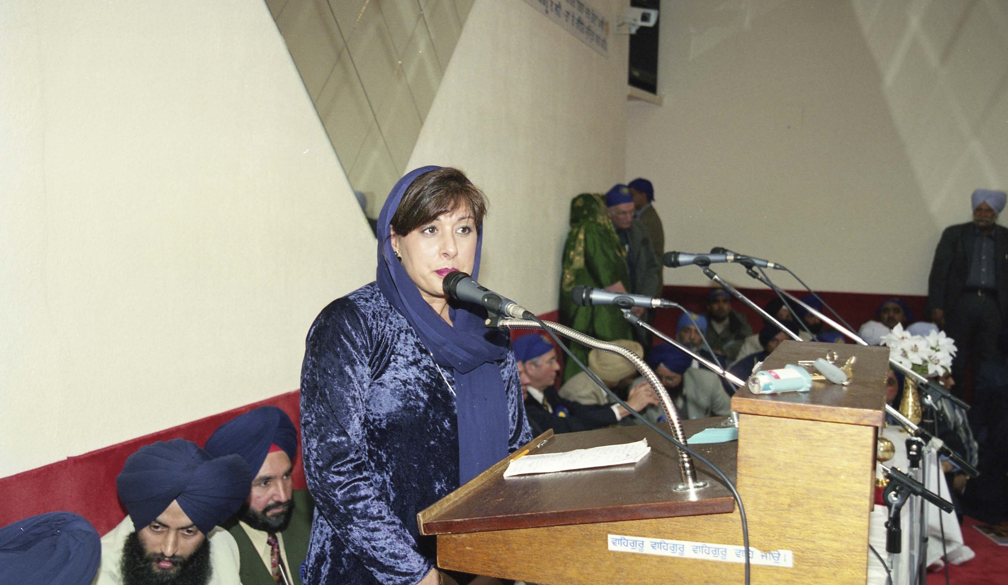 [Photograph of a speaker at the Sikh Temple in Vancouver]
