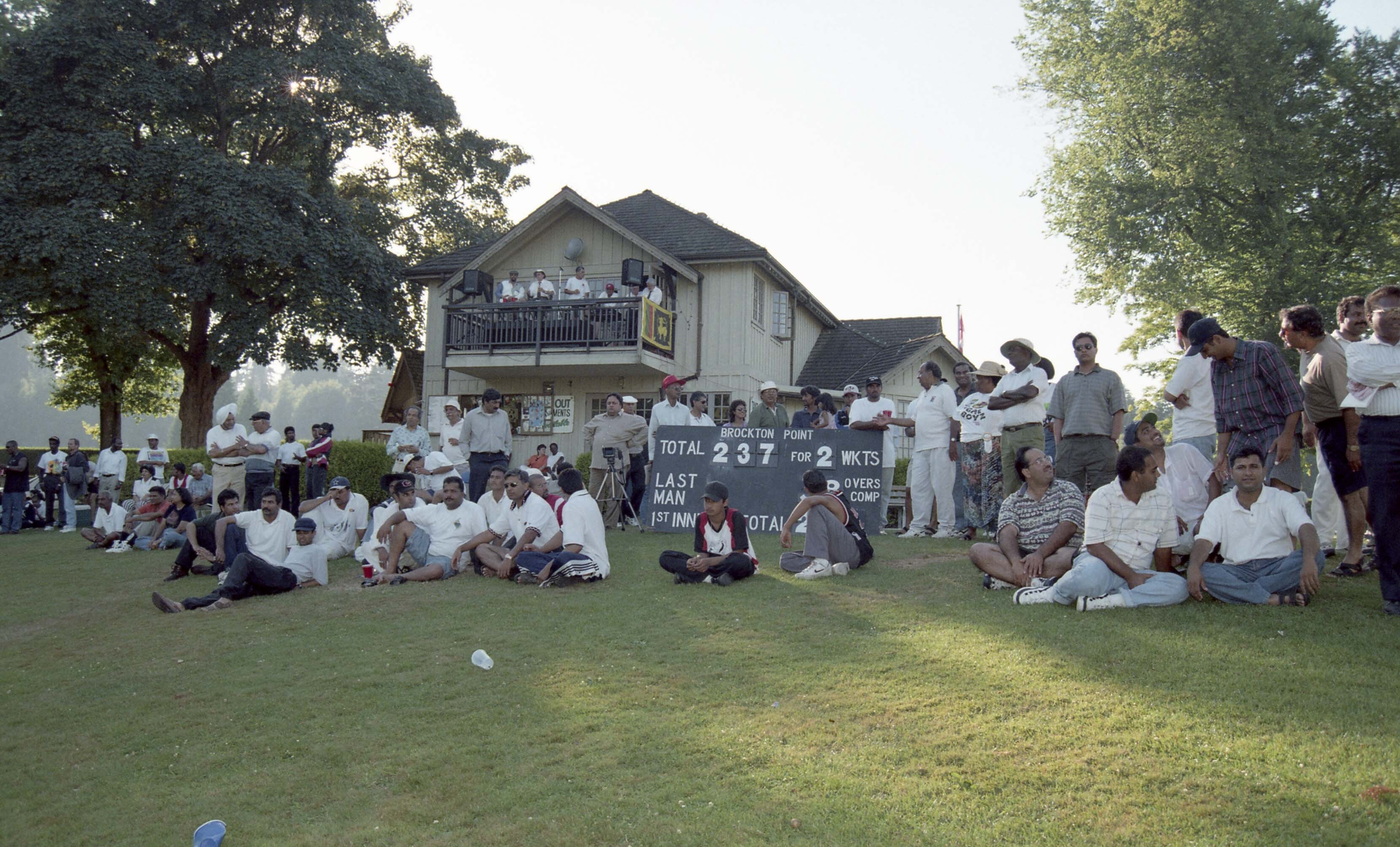 [Photograph of a group of individuals watching cricket in Vancouver]