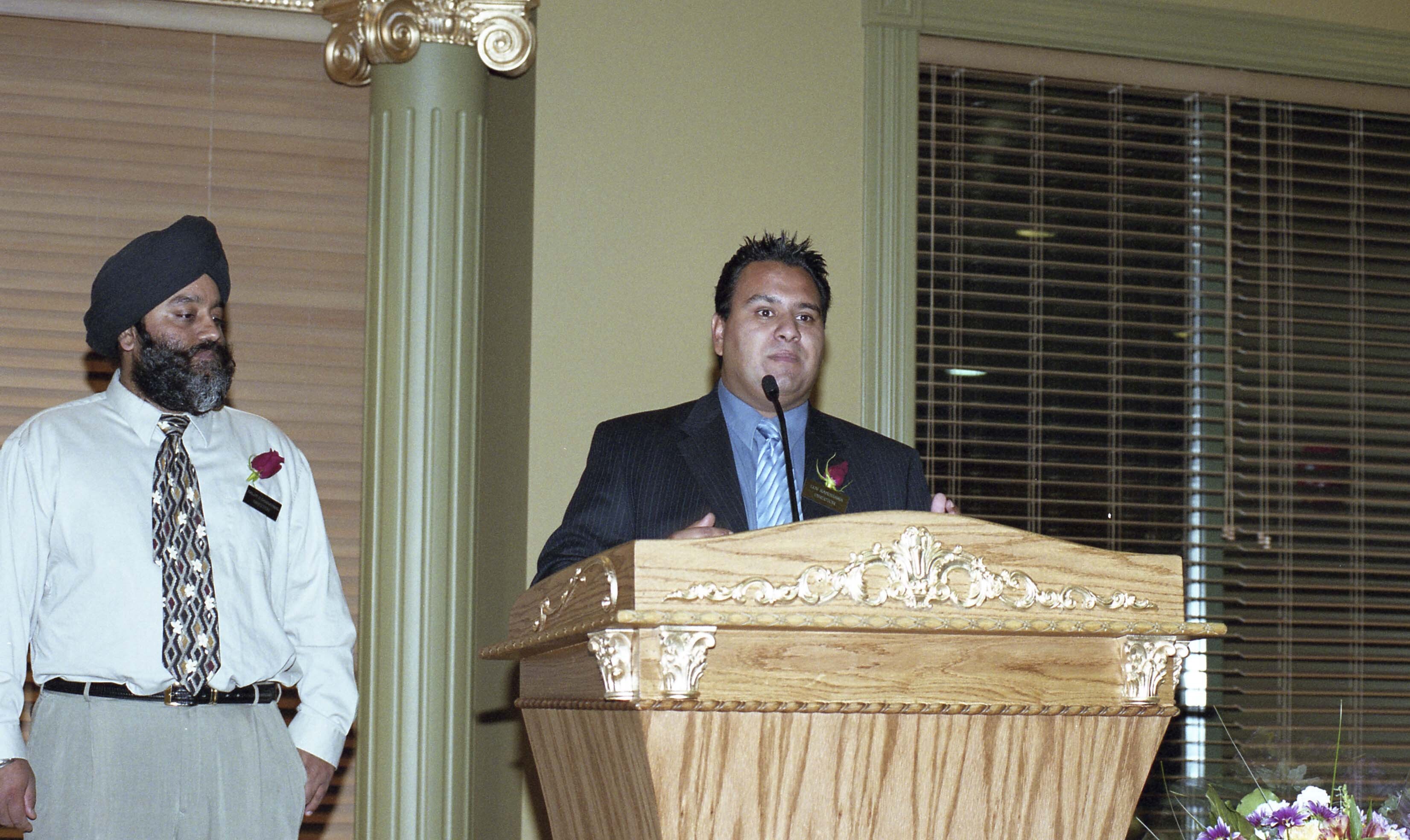 [Photograph of a speaker at the Indo-Canadian Business Association Achievement Awards in Surrey]