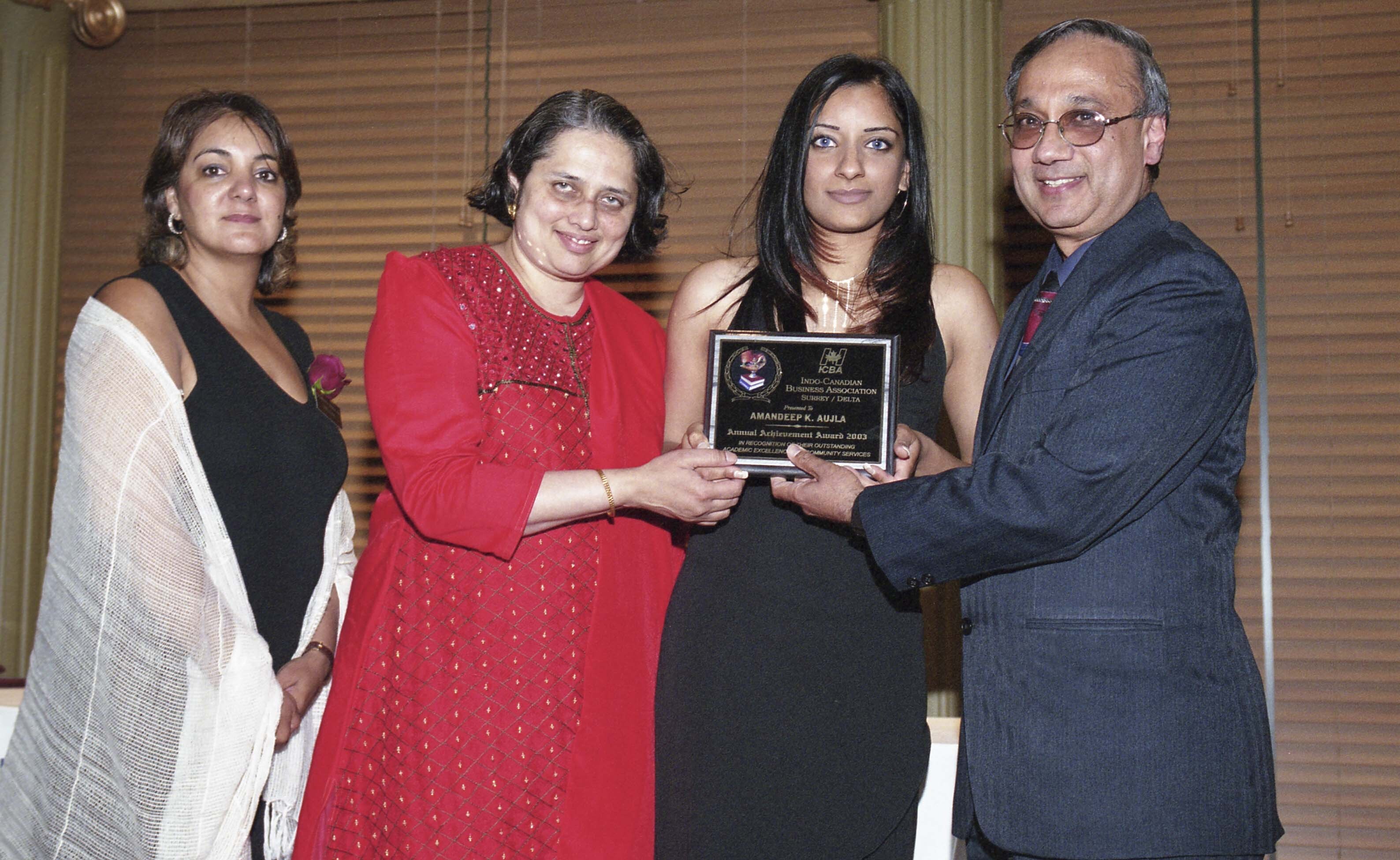 [Photograph of a group of individuals with an award at the Indo-Canadian Business Association Achievement Awards in Surrey]