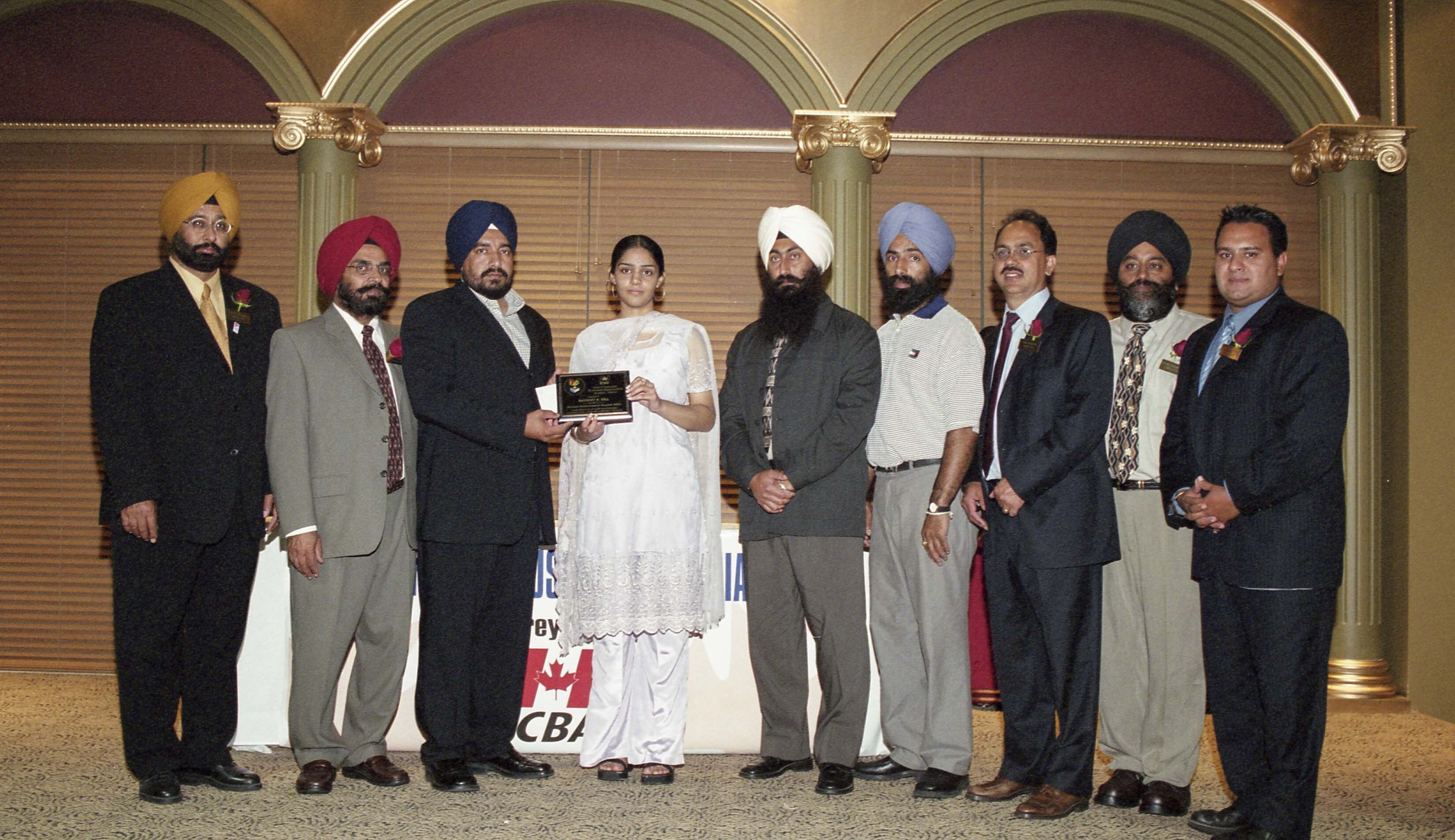 [Photograph of a group of individuals with an award at the Indo-Canadian Business Association Achievement Awards in Surrey]