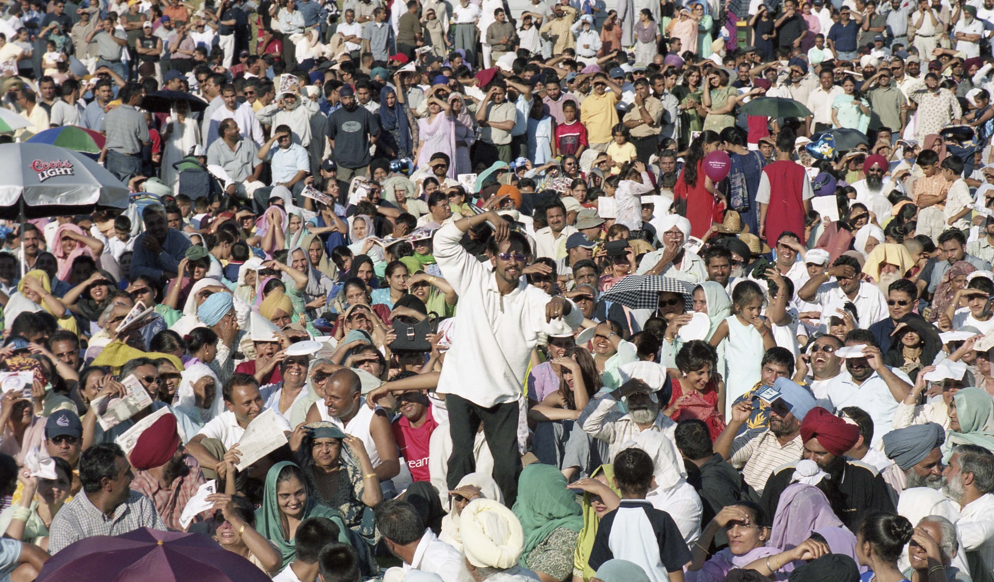 Photograph of a group of unidentified individuals at the 8th annual Mela Gadri Babiyan Da. The event was organized by the Prof. Mohan Singh Memorial Foundation and took place at Bear Creek Park in Surrey, British Columbia (B.C.).