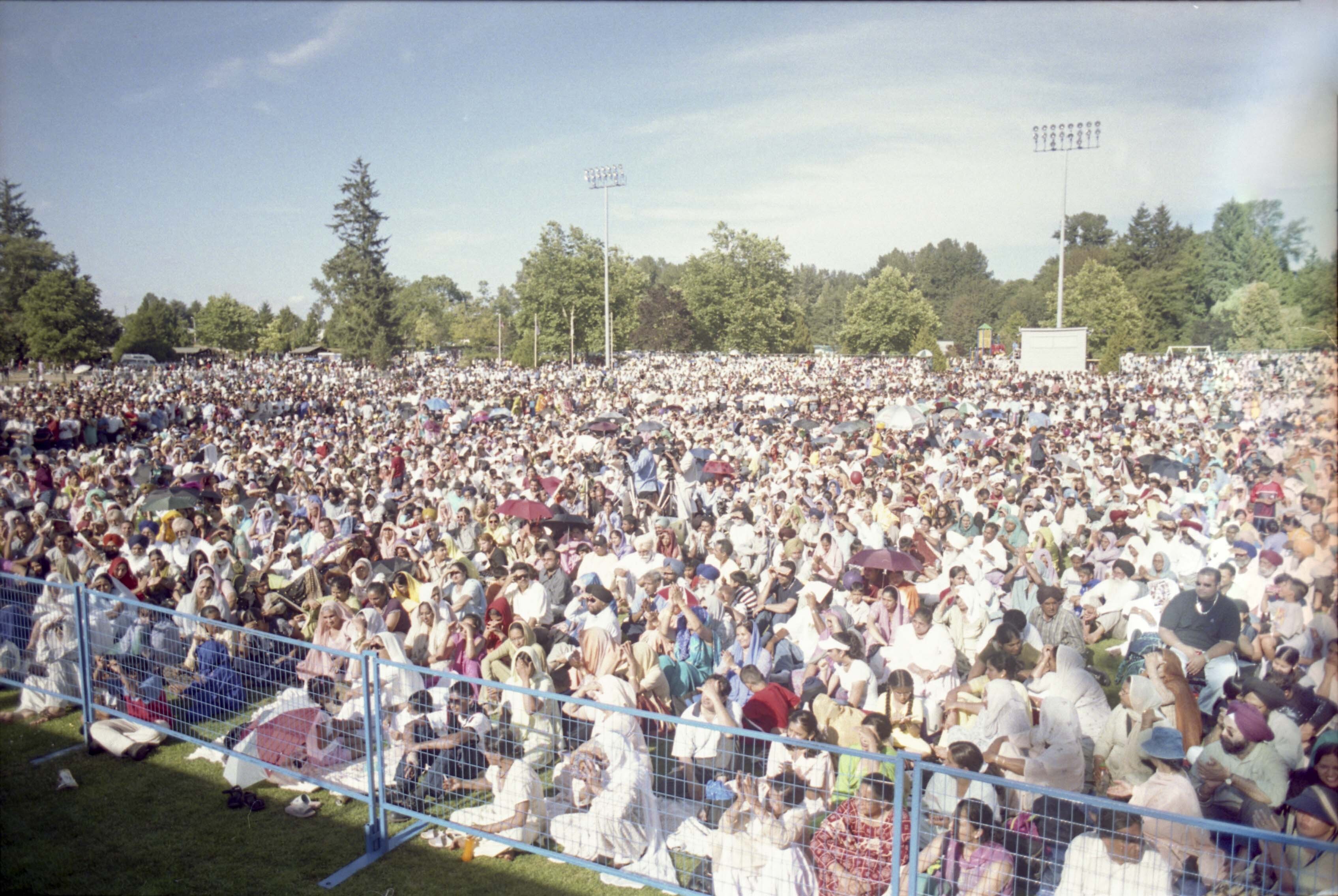Photograph of a group of unidentified individuals at the 8th annual Mela Gadri Babiyan Da. The event was organized by the Prof. Mohan Singh Memorial Foundation and took place at Bear Creek Park in Surrey, British Columbia (B.C.).
