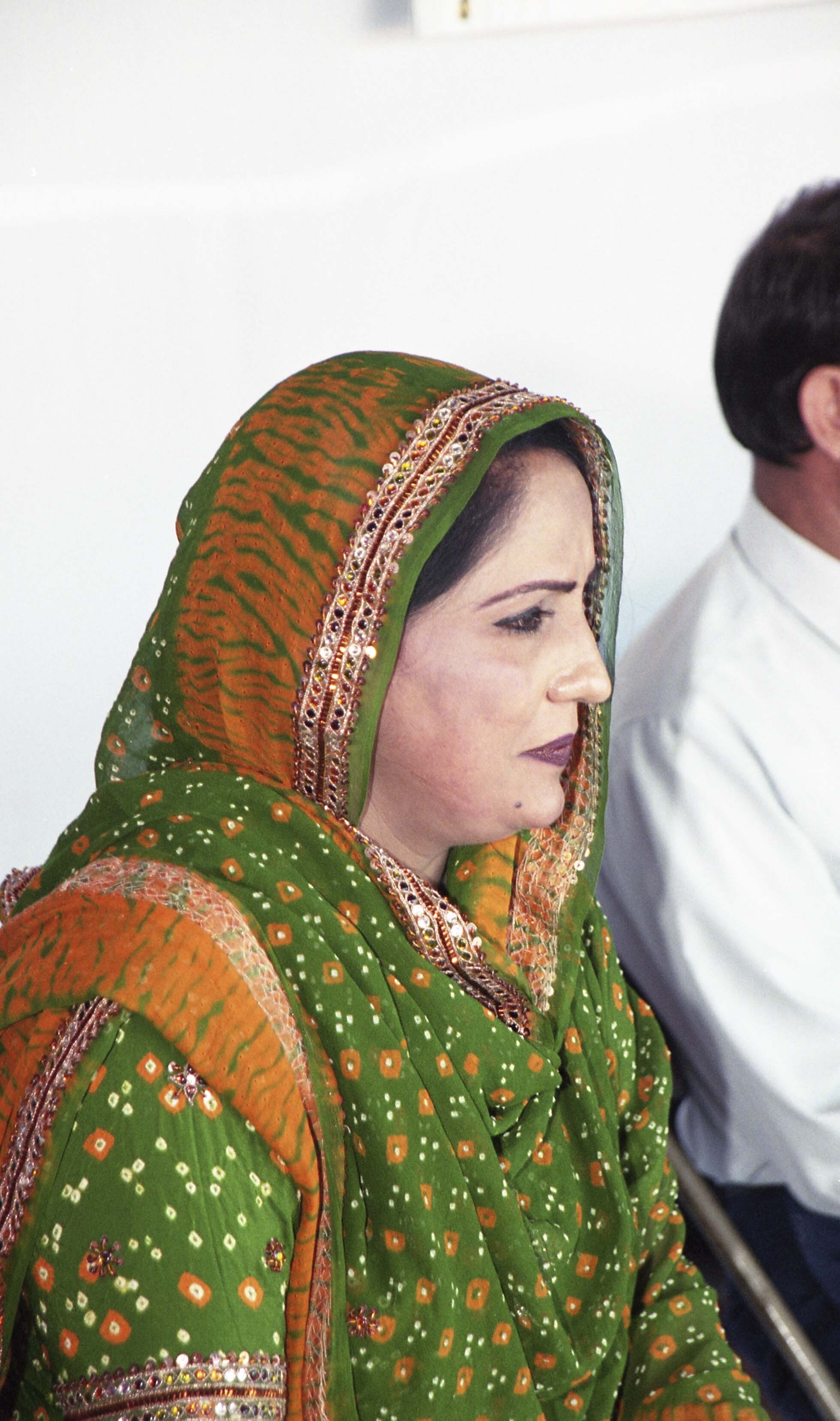 Photograph of an unidentified individual onstage at the 8th annual Mela Gadri Babiyan Da. The event was organized by the Prof. Mohan Singh Memorial Foundation and took place at Bear Creek Park in Surrey, British Columbia (B.C.).