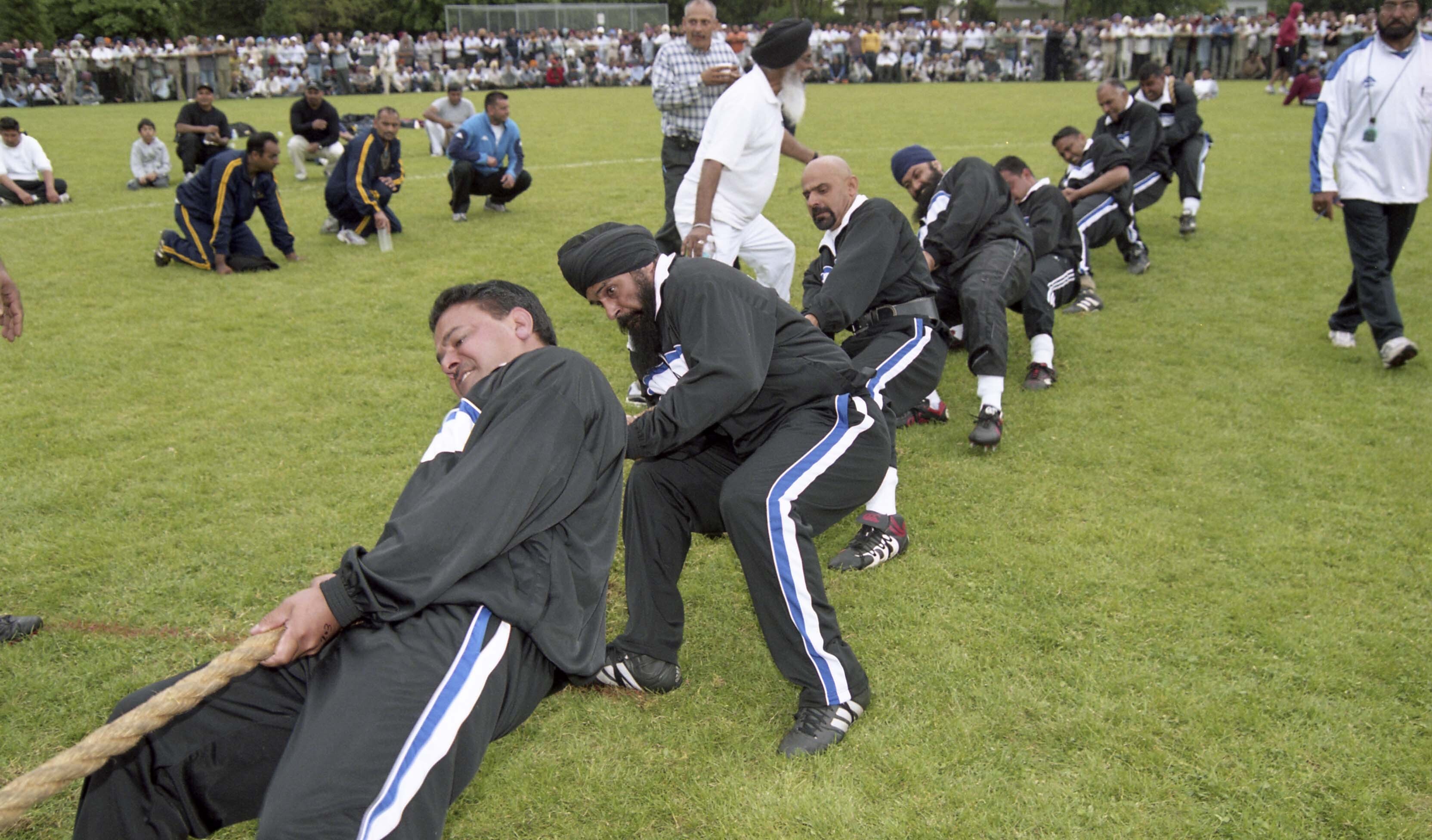 Photograph of a game of tug of war during the Khalsa Diwan Society's Annual Sports Day 2006, hosted at the Khalsa Diwan Society Gurdwara in Vancouver, B.C.