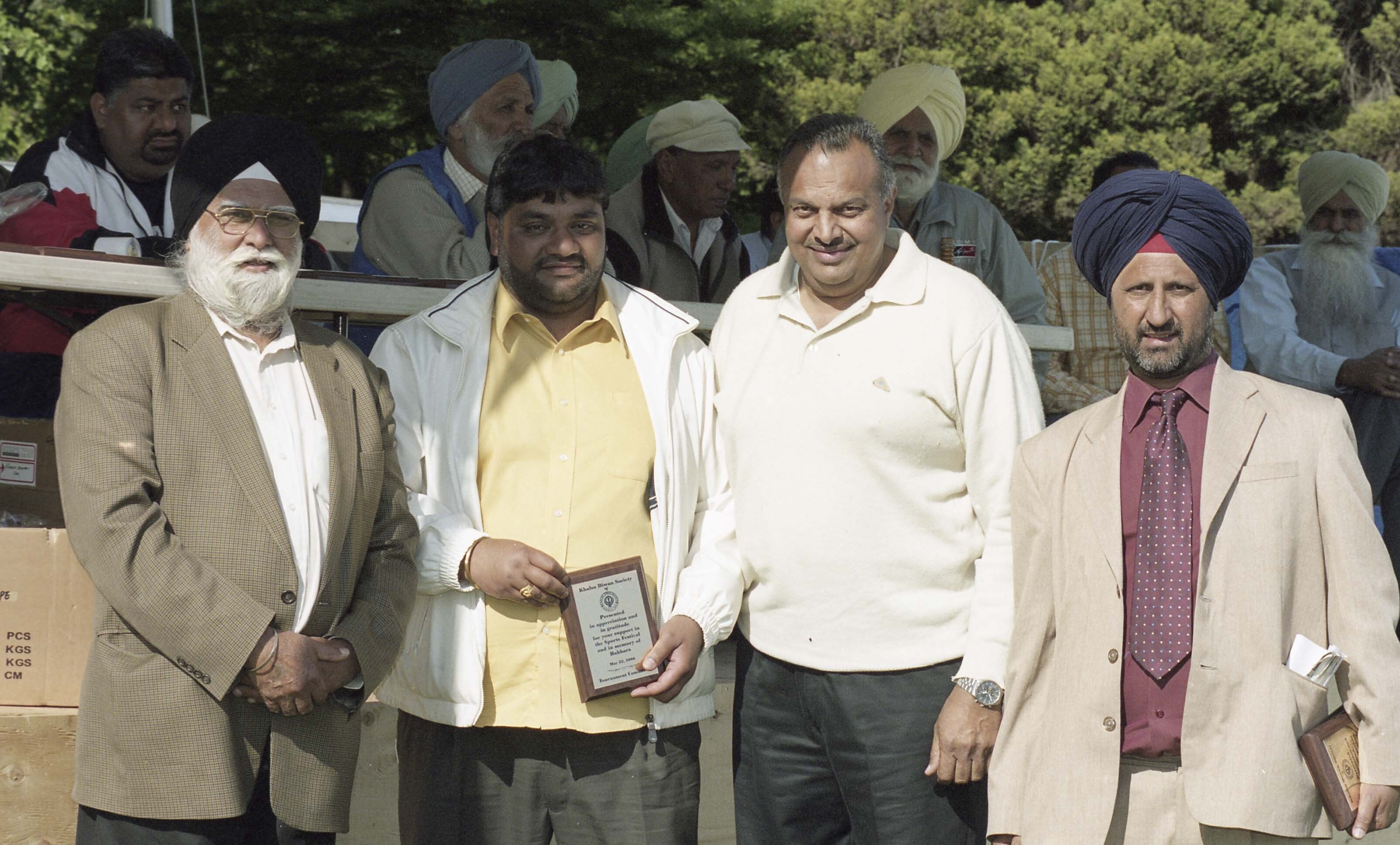Photograph of an unidentified man receiving a plaque at the Khalsa Diwan Society's Annual Sports Day 2006, hosted at the Khalsa Diwan Society Gurdwara in Vancouver, B.C.