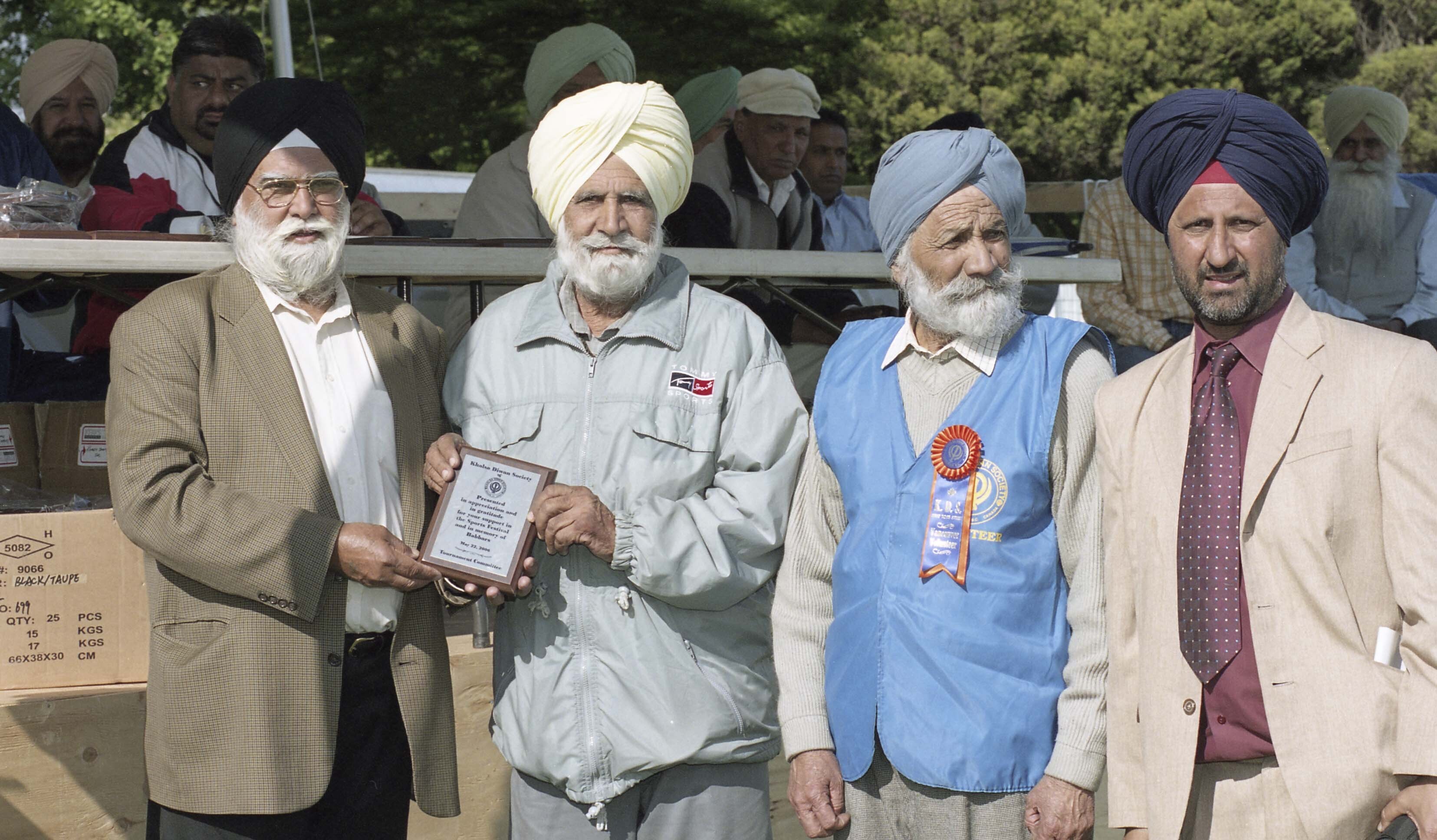 Photograph of an unidentified man receiving a plaque at the Khalsa Diwan Society's Annual Sports Day 2006, hosted at the Khalsa Diwan Society Gurdwara in Vancouver, B.C.