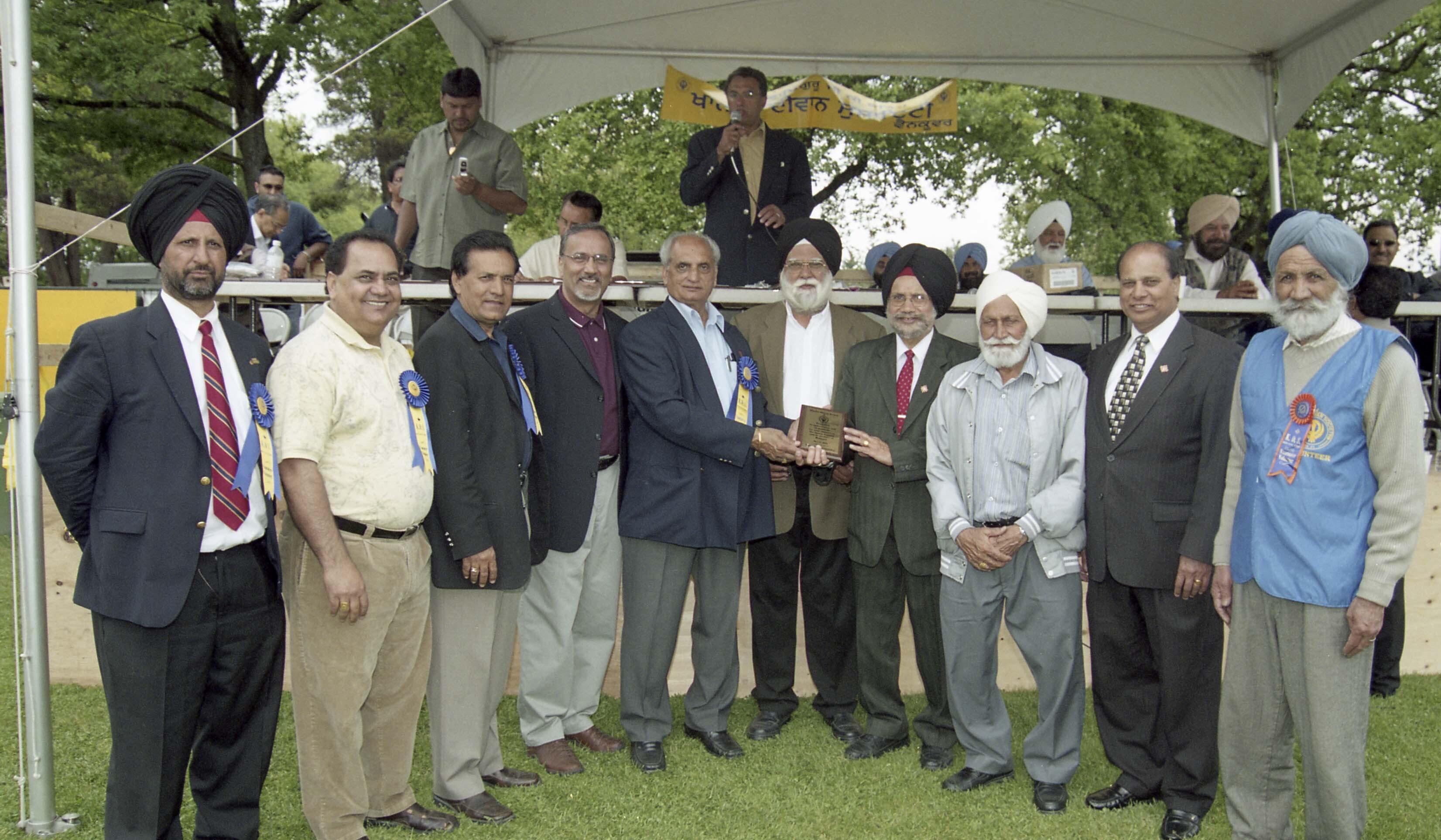 Group portrait of an unidentified man receiving a plaque at the Khalsa Diwan Society's Annual Sports Day 2006, hosted at the Khalsa Diwan Society Gurdwara in Vancouver, B.C.