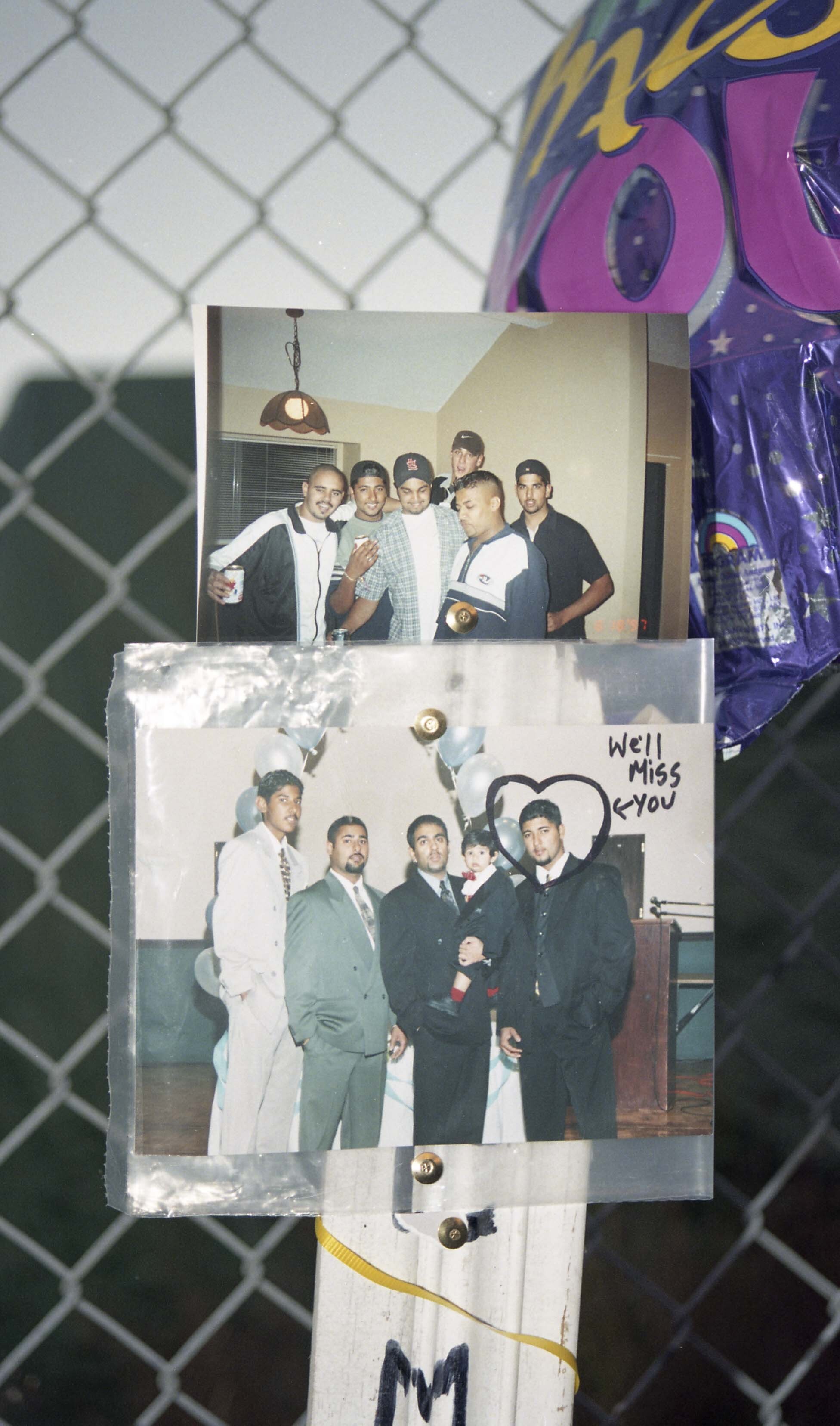 [Photograph of prints put up on Terry Sidhu's memorial site in Burnaby]