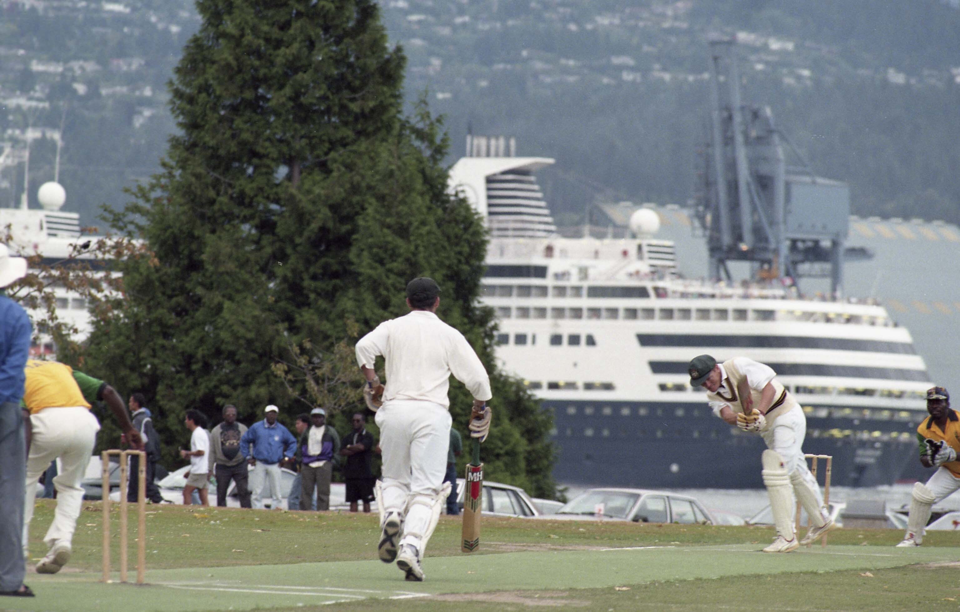 Photograph of a cricket match outside the Brockton Clubhouse in Vancouver, B.C.